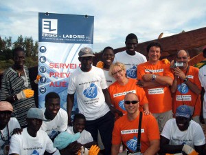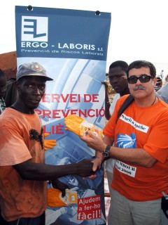 El proyecto de Prevención Sin Fronteras en Senegal fue el primero que llevamos a cabo. Creamos proyectos sociales, repartimos guantes de sgeuridad entre los trabajadores que fabrican barcas de pesca en la playa, repartimos camisetas de trabajo y promocionamos la prevención y la seguridad segura durante la pesca.